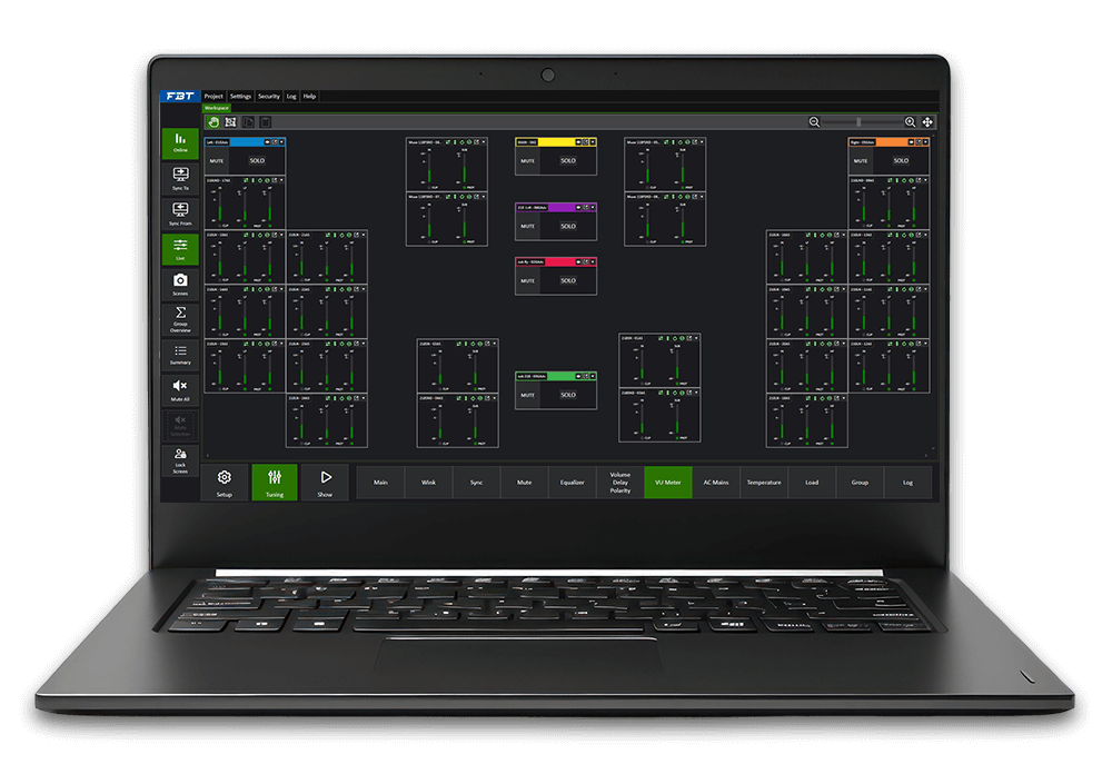 With the release of Infinito – System Management Suite, FBT redefines the concept of monitoring and remote control. Entirely developed by the FBT Research and Development staff, Infinito is dedicated to next-generation products, such as active speakers, matrix processors, and processed power amplifiers. Infinito uses a TCP/IP protocol over Ethernet infrastructure, based on the open standard AES70 of the OCA Alliance..