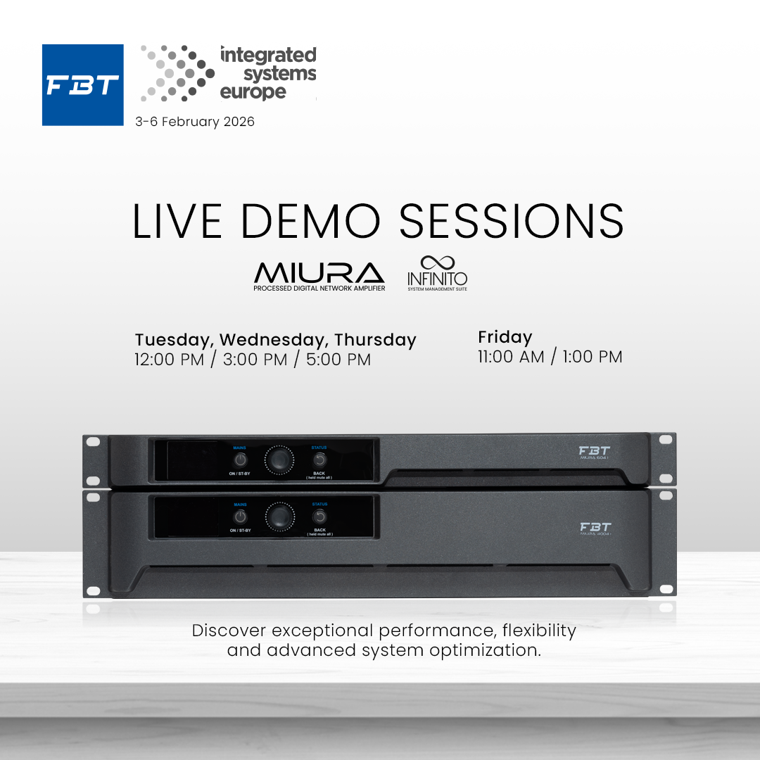 Join the live demo sessions of Infinito – System Management Suite at our booth, fully configured with our new Miura processed digital network amplifiers.