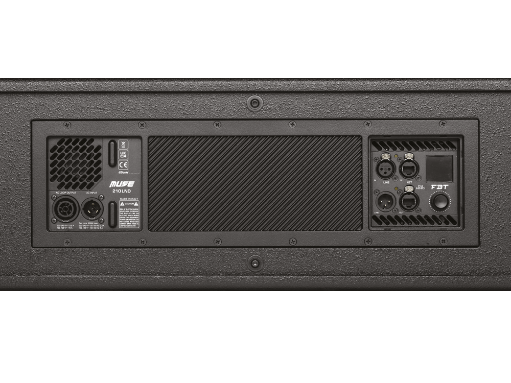 • The MUSE 210LND features a fully integrated 4-point rigging system, allowing fast, tool-free vertical array assembly. Splay angles are adjustable in 1° increments from 0° to 10°, enabling precise coverage tuning for any venue.