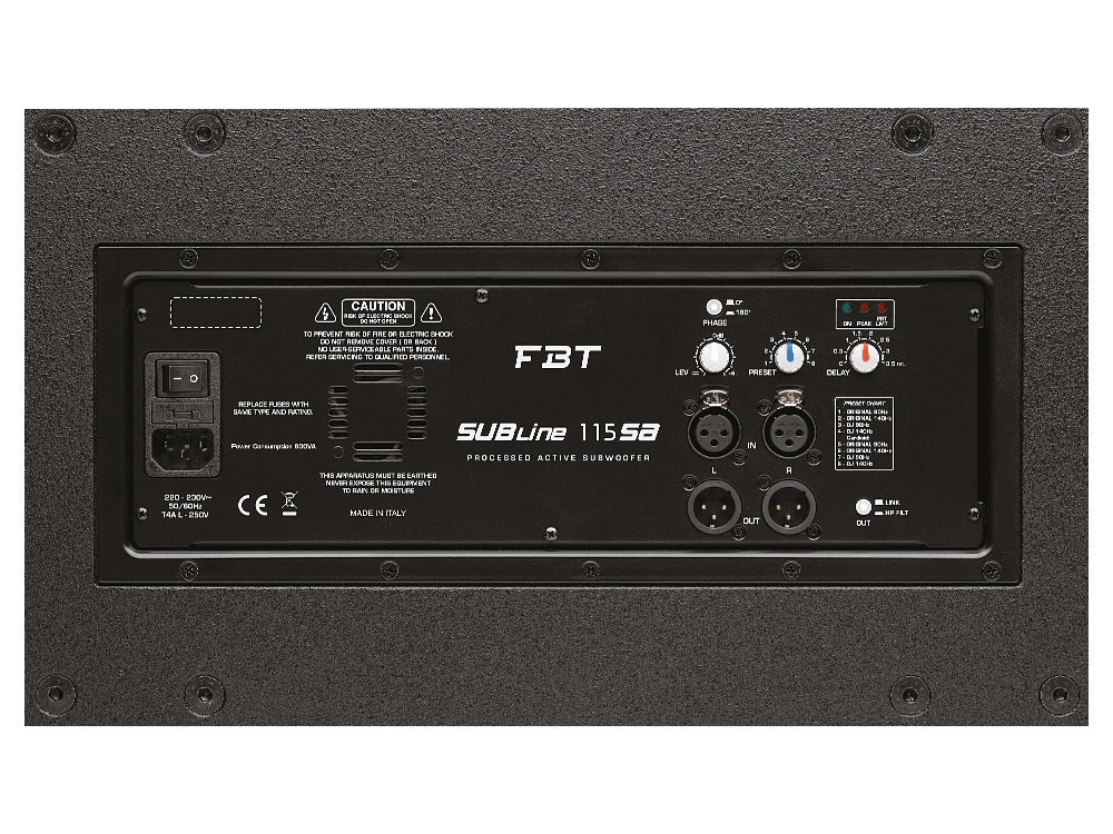 Made from durable birch plywood with a scratch-resistant finish, the SUBline 115SA offers ergonomic handles and an M20 top mount for pole use. Its onboard DSP with 8 presets allow seamless integration with FBT’s active top speakers, making it ideal for mobile systems, live gigs, or permanent installations.